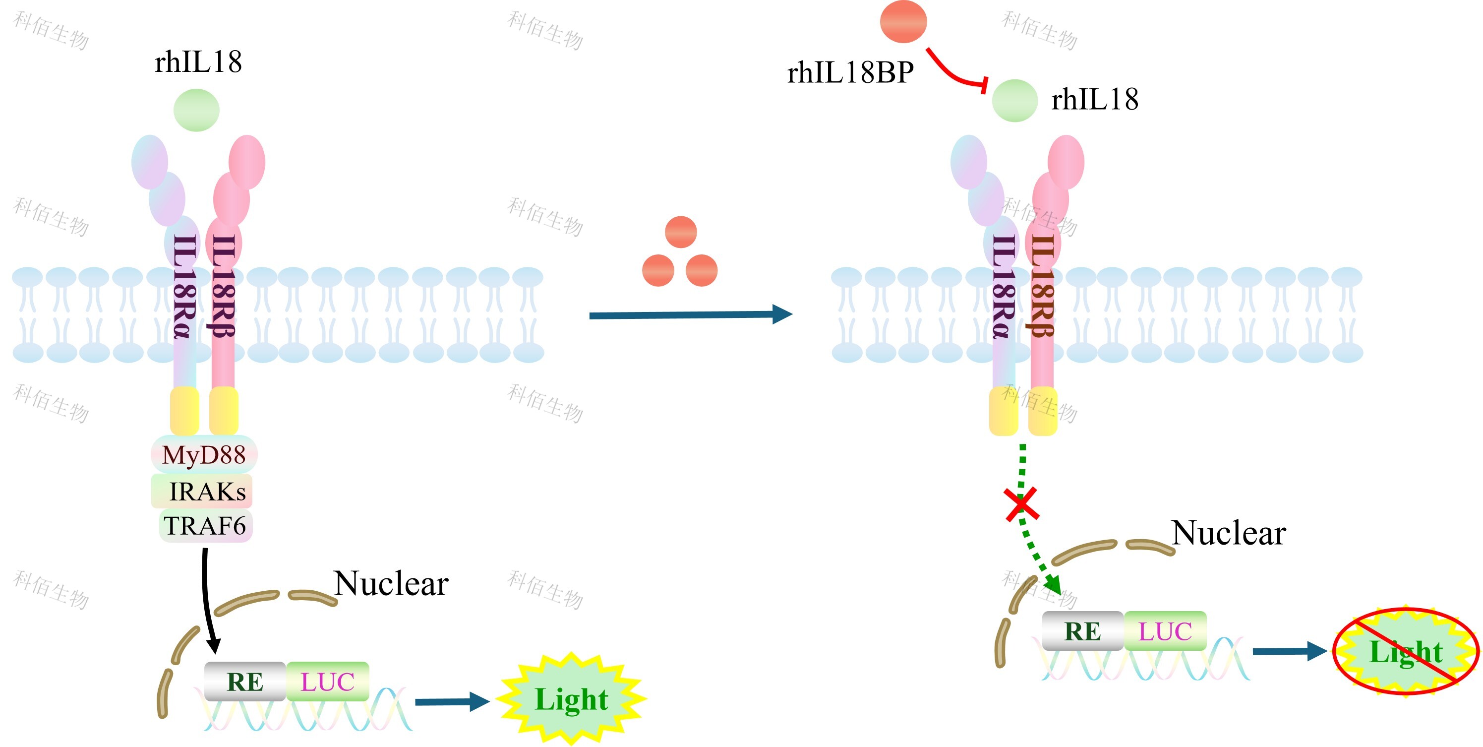 | IL18 Effector Reporter Cell(Suspension),在由調(diào)控因子調(diào)控并表達報告基因的重組細胞上,穩(wěn)定表達人 IL18Rα和人 IL18Rβ。 報告基因細胞模型可以很好的反映分子作用機制,同時具備更小的變異性和更好的可 操作性,已被中檢院及藥企廣泛應(yīng)用于抗體藥物生物活性的檢定,對于藥物研發(fā)、質(zhì)量控 制、批次放行都有重要意義。 IL18 Effector Reporter Cell(Suspension)報告基因藥靶模型很好的模擬了體內(nèi) IL18 的信號轉(zhuǎn)導(dǎo)過程,原理見下圖所示。 ![]() Figure 1. IL18 Effector Reporter Cell(Suspension)細胞模型原理圖 |