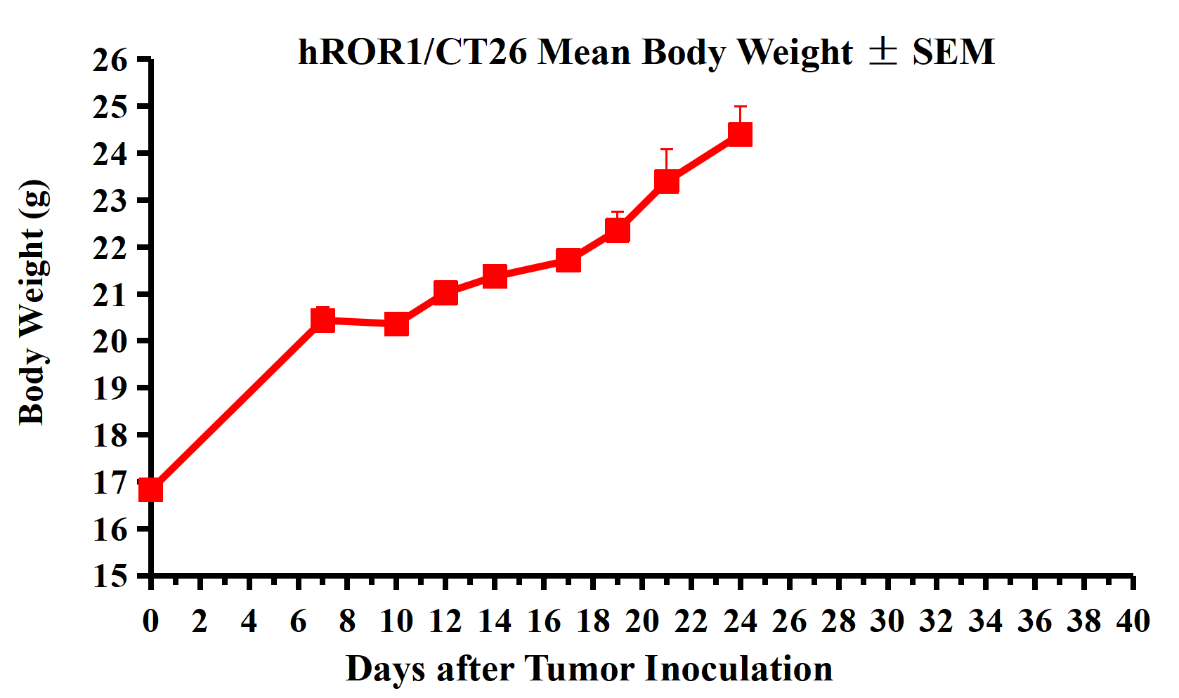 Figure 2. hROR1/CT26 Mean Body Weight ± SEM.