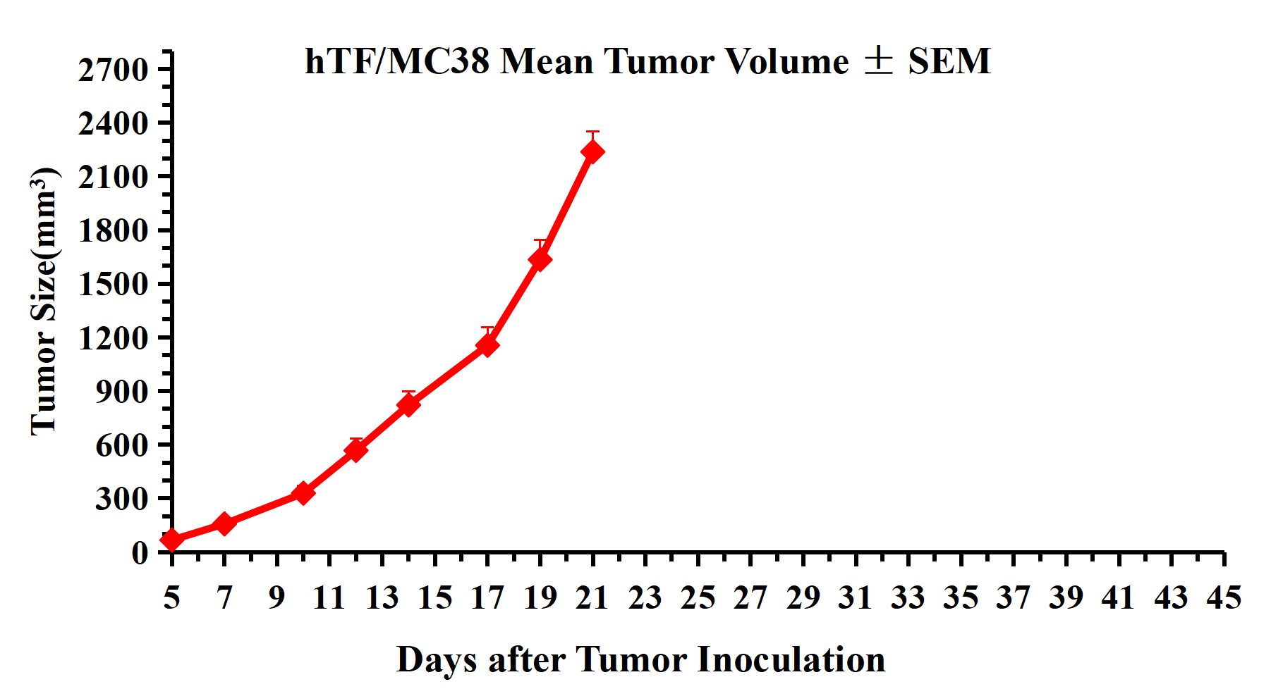 Figure 3.hTF/MC38 Mean Tumor Volume ± SEM .