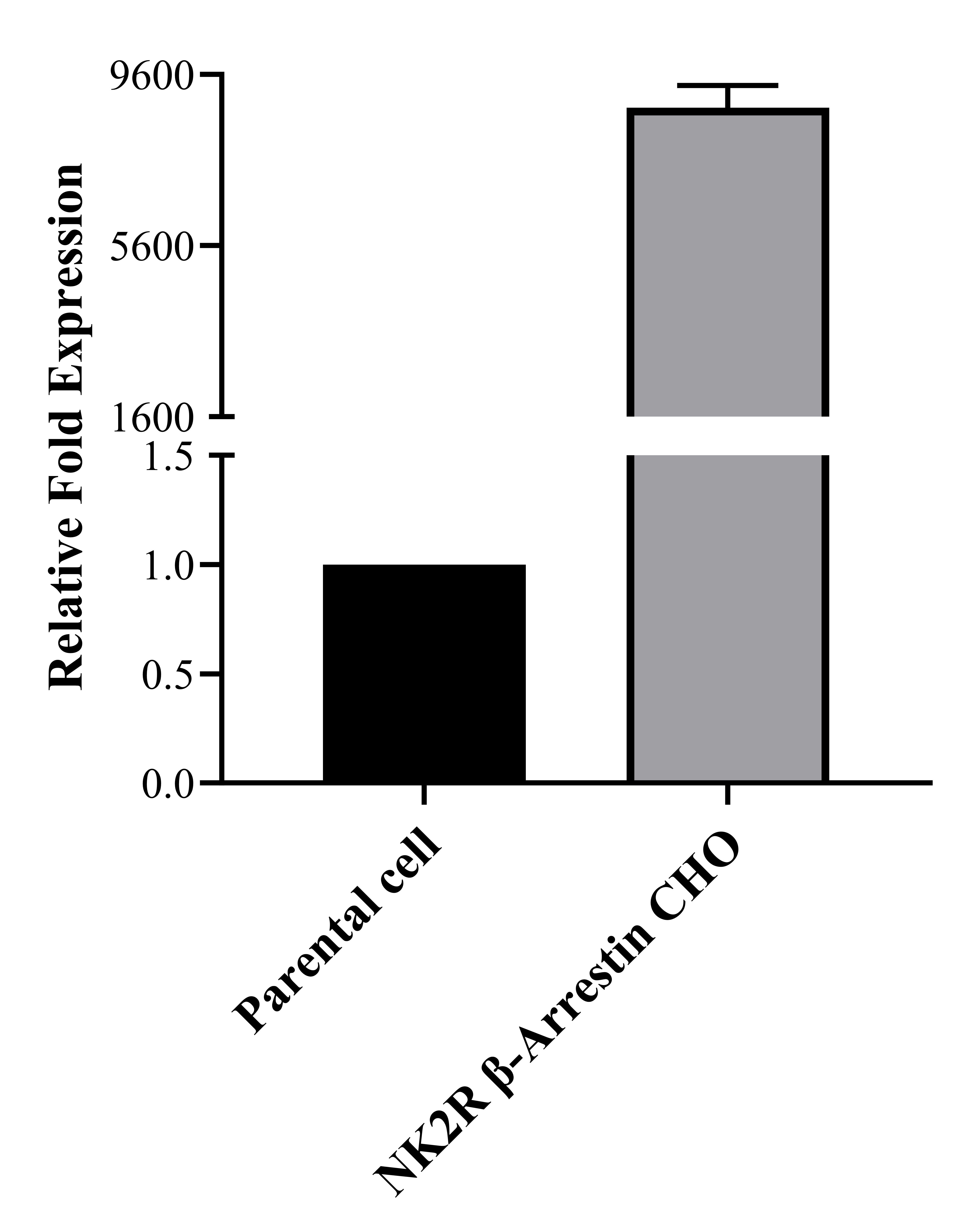 NK2R β-Arrestin CHO 報告基因藥靶模型很好的模擬了體內 NK2R/β-Arrestin 的信號轉 導過程,原理見下圖所示。當缺乏配體刺激時,β-Arrestin 不與 NK2R 結合,融合β-Arrestin 的熒光素酶處于失活構象,當 NK2R 遭遇配體刺激時,融合熒光素酶報告基因的β-Arrestin 被招募,使熒光素酶報告基因處于激活狀態(tài),加入其底物后發(fā)光信號增強。