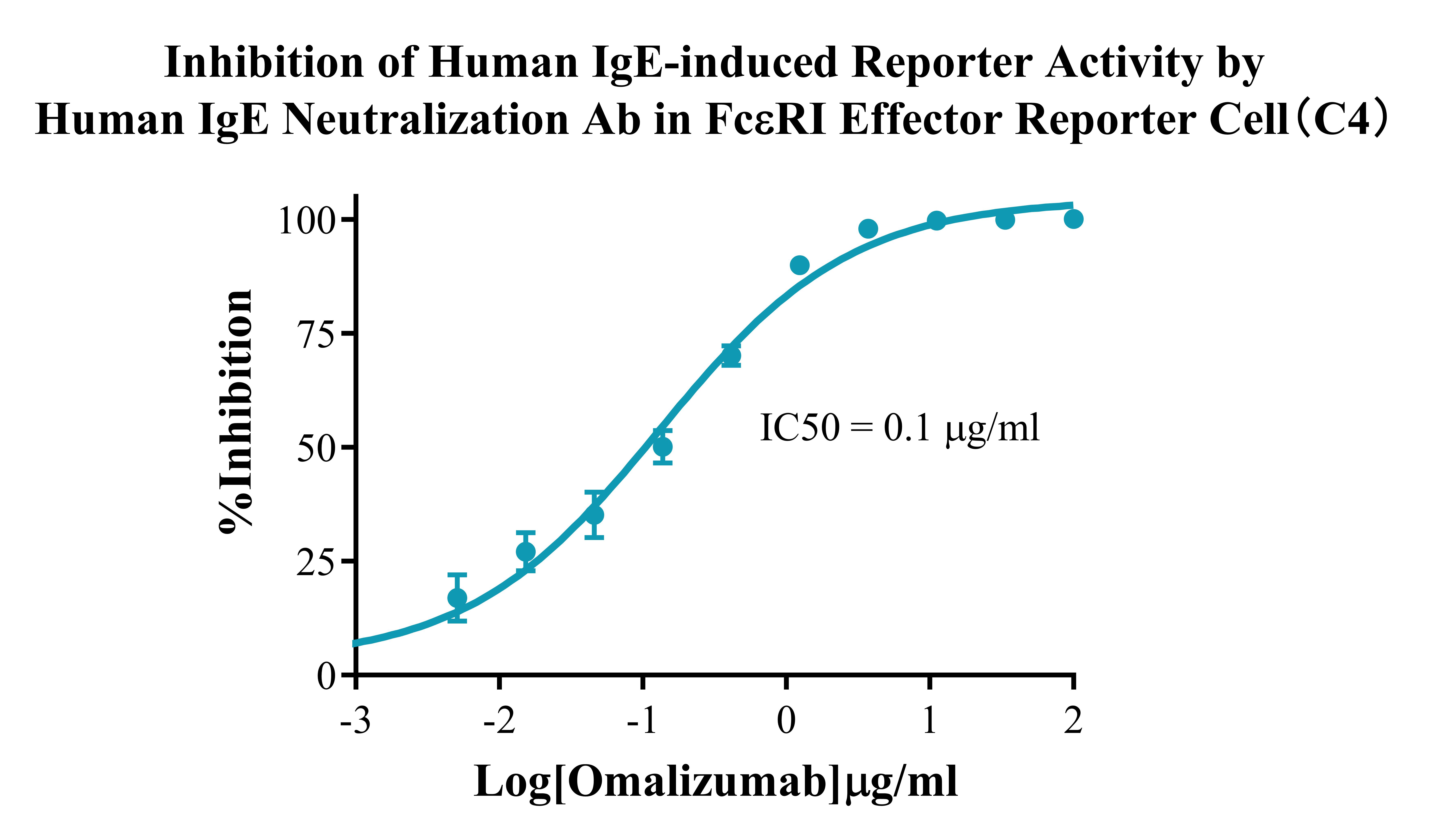 Figure 4. Inhibition of Human IgE-induced Reporter Activity by Human IgE Neutralization Ab in FcεRI Effector Reporter Cell(C4).