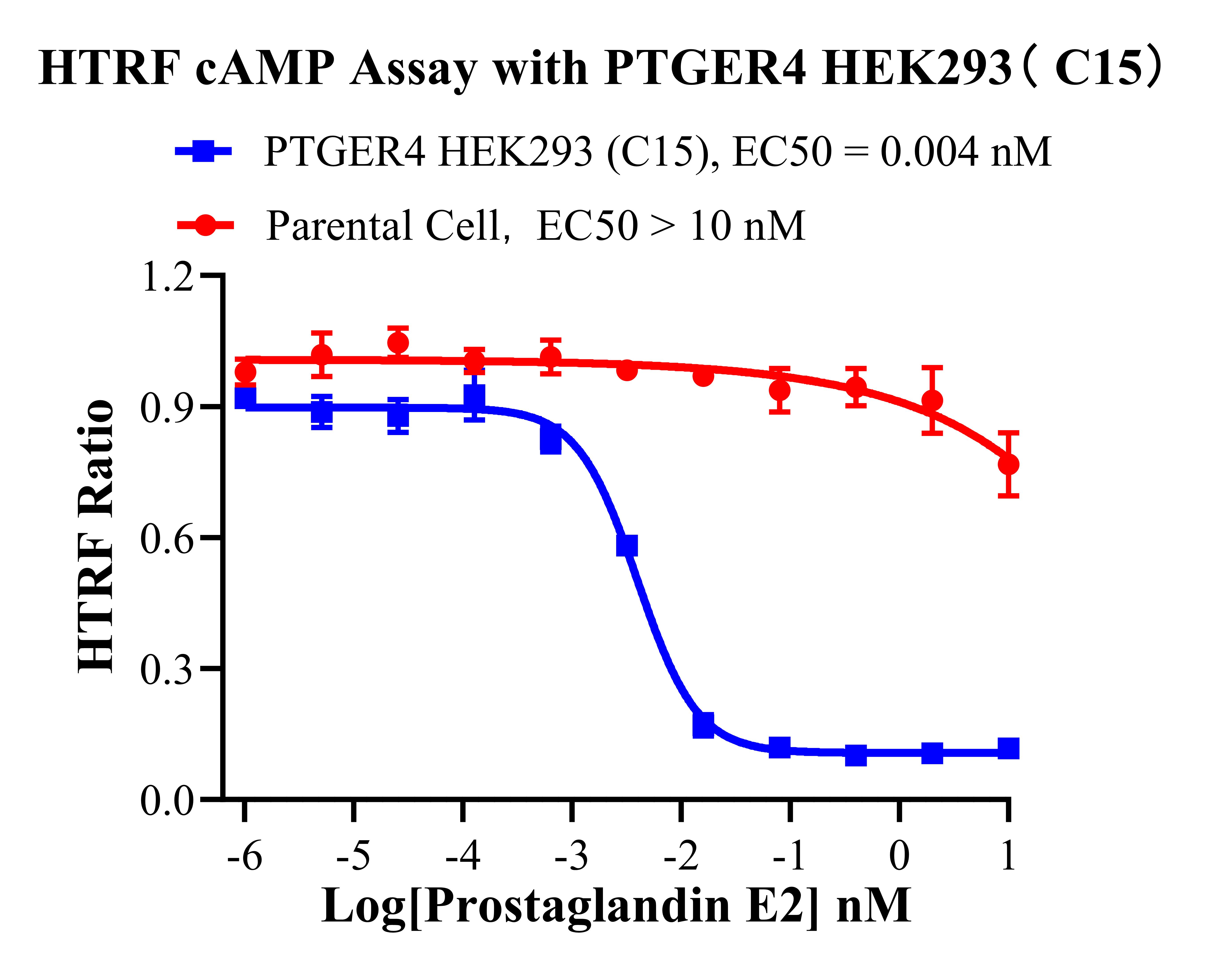 PTGER4 HEK293 細胞藥靶模型很好的模擬了體內 PTGER4 的信號轉導過程,原理見下圖所示。