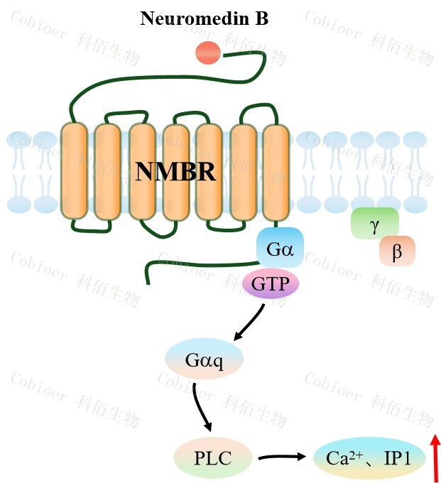 神經(jīng)介素 B 受體(NMBR)是一種廣泛分布于中樞神經(jīng)系統(tǒng)(如調(diào)控焦慮與攝食的下 丘腦、杏仁核)、外周組織(如肺、胃腸平滑?。┘岸喾N腫瘤(包括小細胞肺癌、膠質(zhì)瘤) 中的 G 蛋白偶聯(lián)受體(GPCR),其特異性結(jié)合配體神經(jīng)介素 B(NMB)或蛙皮素后,主 要激活 Gαq/11-PLCβ 信號級聯(lián),觸發(fā) IP3 介導的 Ga 2+釋放與 DAG-PKC 驅(qū)動的 ERK 磷酸化, 進而調(diào)控細胞增殖、炎癥因子釋放(如 TNF-α/IL-6)及平滑肌收縮;該受體在生理層面參 與攝食抑制(下丘腦 POMC 神經(jīng)元激活)與痛覺調(diào)節(jié)(增強阿片鎮(zhèn)痛),但病理狀態(tài)下通 過促進腫瘤增殖(如肺癌自分泌環(huán)激活 PI3K/AKT)、血管新生(膠質(zhì)瘤 VEGF 分泌)和 免疫微環(huán)境重塑(募集腫瘤相關(guān)巨噬細胞)驅(qū)動疾病進展,同時介導哮喘的氣道高反應性 與腸易激綜合征的胃腸動力紊亂,當前其治療價值聚焦于拮抗劑用于抗腫瘤、抗炎(緩解 支氣管痙攣)及激動劑治療中樞代謝性疾?。ㄈ绶逝郑?,而開發(fā)兼具組織選擇性(外周拮 抗/中樞激動)與穩(wěn)定性的藥物仍是核心挑戰(zhàn)。 | |