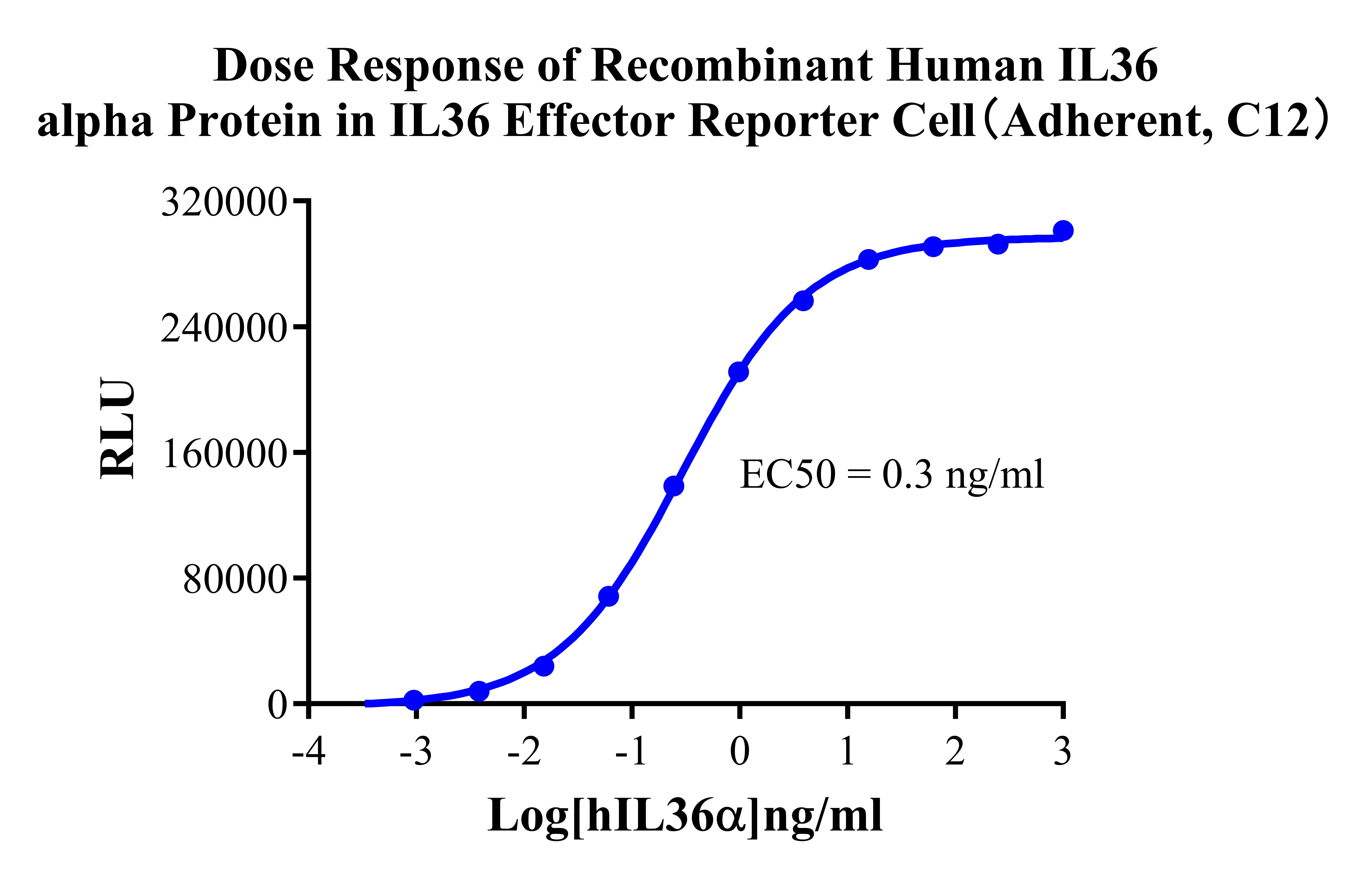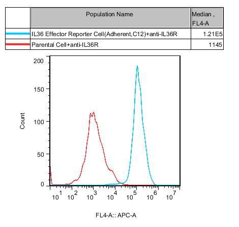 ![]() Figure 2. Recombinant IL36 Effector Reporter Cell(Adherent) stably expressing IL36R. ![]() Figure 3. Dose Response of Recombinant Human IL36 alpha Protein in IL36 Effector Reporter Cell(Adherent, C12). ![]() Figure 4. Inhibition of hIL36α Induced Reporter Activity By Blocking Abs in IL36 Effector Reporter Cell(Adherent, C12). |