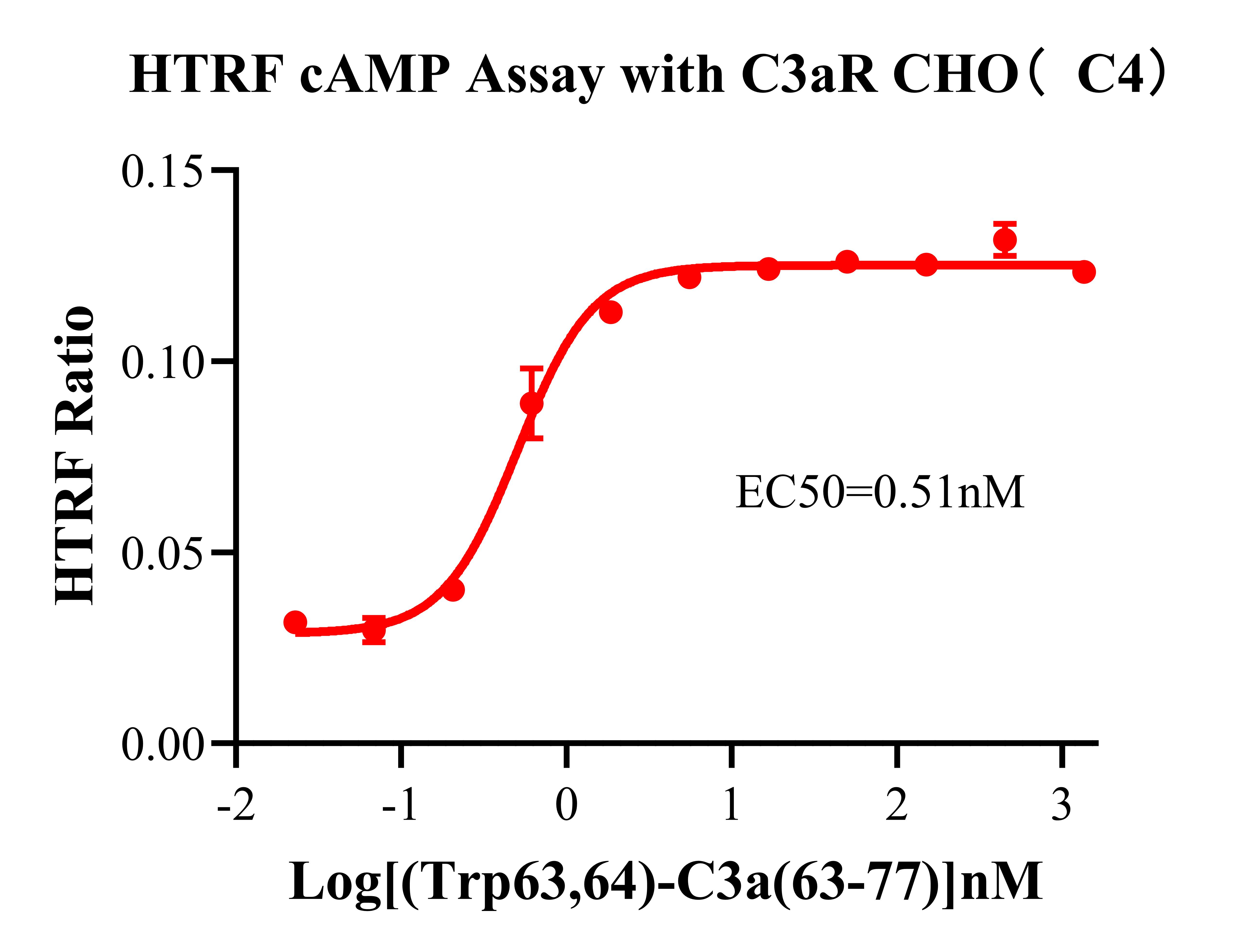 | 補體過敏毒素 C3a 是補體系統(tǒng)激活(經(jīng)典、凝集素或旁路途徑)過程中,由 C3 轉(zhuǎn)化 酶裂解 C3 蛋白α鏈釋放的小分子多肽(77 個氨基酸,分子量 9 kDa)。作為補體級聯(lián)的核 心炎癥介質(zhì),C3a 在血漿中以前體形式(無活性) 存在,經(jīng)羧肽酶 N 切除 C 端精氨酸后轉(zhuǎn) 化為活性形式 C3a-desArg(失去受體結合能力但保留部分免疫調(diào)節(jié)功能)。 C3aR 是 C3a 的唯一高親和力受體,屬于 G 蛋白偶聯(lián)受體(GPCR)B 家族,具有獨特 的 7 次跨膜結構及超長胞外第二環(huán)(ECL2),介導配體特異性識別。C3aR 被配體 C3a 激 活后,通過 Gi/Gq 蛋白雙耦聯(lián)觸發(fā)下游信號。Gi 通路抑制 cAMP 生成并激活 PI3K-Akt 促 細胞存活與遷移;Gq 通路則激活 PLCβ—IP3/DAG/PKC—NF-κB 級聯(lián),介導鈣動員與炎癥 基因轉(zhuǎn)錄。其反應呈現(xiàn)雙效性:低濃度時促進組織修復、免疫調(diào)節(jié);高濃度時驅(qū)動過敏反 應、神經(jīng)炎癥及腫瘤免疫抑制,且病理效應與濃度和組織微環(huán)境密切相關。 |