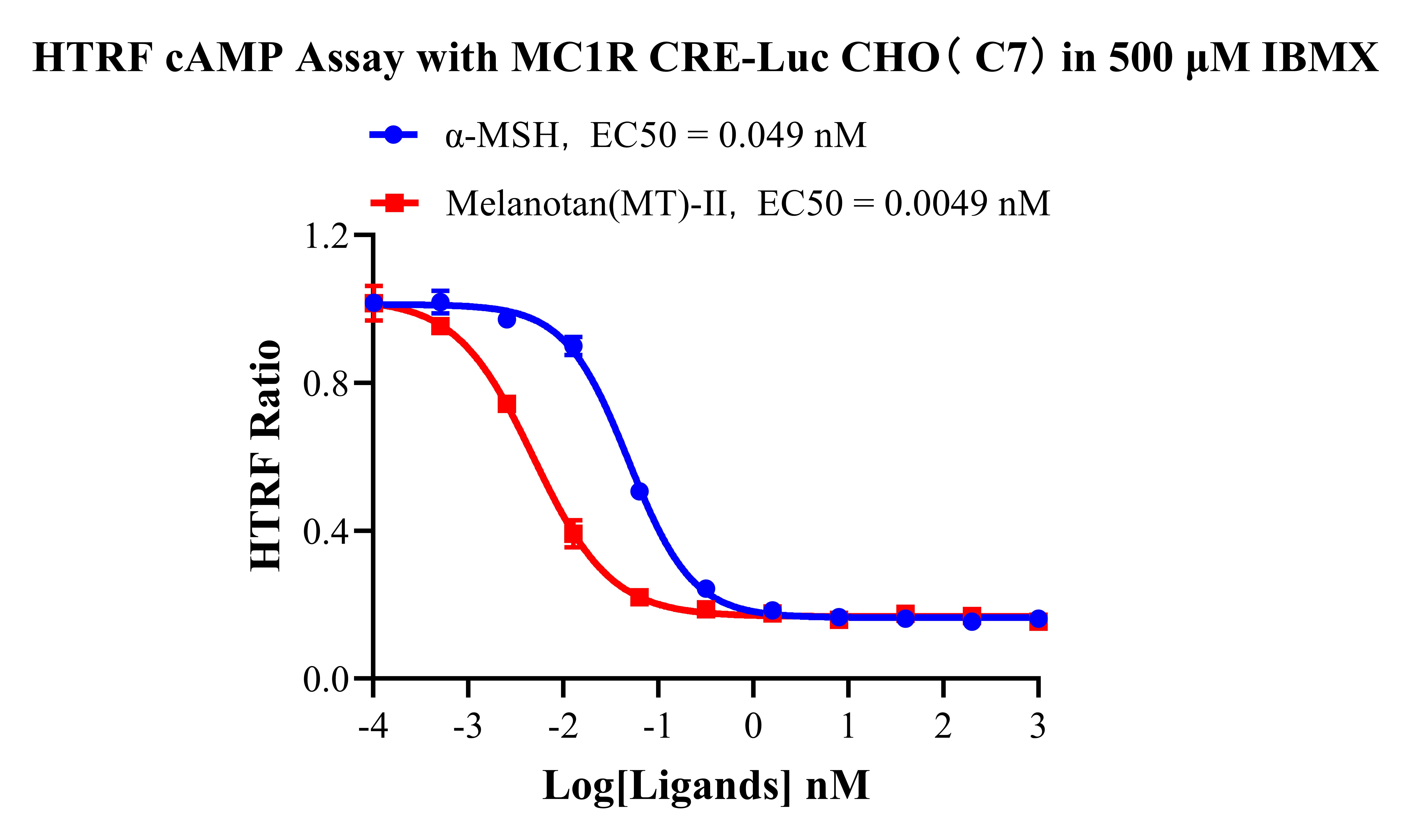 黑素皮質(zhì)素受體 1(MC1R)是一種主要位于黑色素細(xì)胞表面的 G 蛋白偶聯(lián)受體,作 為黑素皮質(zhì)素受體家族(MC1R 至 MC5R)中最小的一員,它在人體中扮演著“皮膚調(diào)色 盤”的關(guān)鍵角色。當(dāng)被α-黑色素細(xì)胞刺激素(α-MSH)激活時,會促使黑色素細(xì)胞生產(chǎn)具 有光保護(hù)作用的真黑色素(深色色素);當(dāng)受體功能減弱時,細(xì)胞則轉(zhuǎn)而生產(chǎn)褐黑色素 (紅黃色素)。因此,MC1R 基因多態(tài)性是導(dǎo)致膚色、發(fā)色差異(如紅發(fā)、雀斑)的主要 原因。其功能缺失突變與皮膚光敏感型、黑色素瘤及非黑色素瘤皮膚癌風(fēng)險升高密切相關(guān)。 |