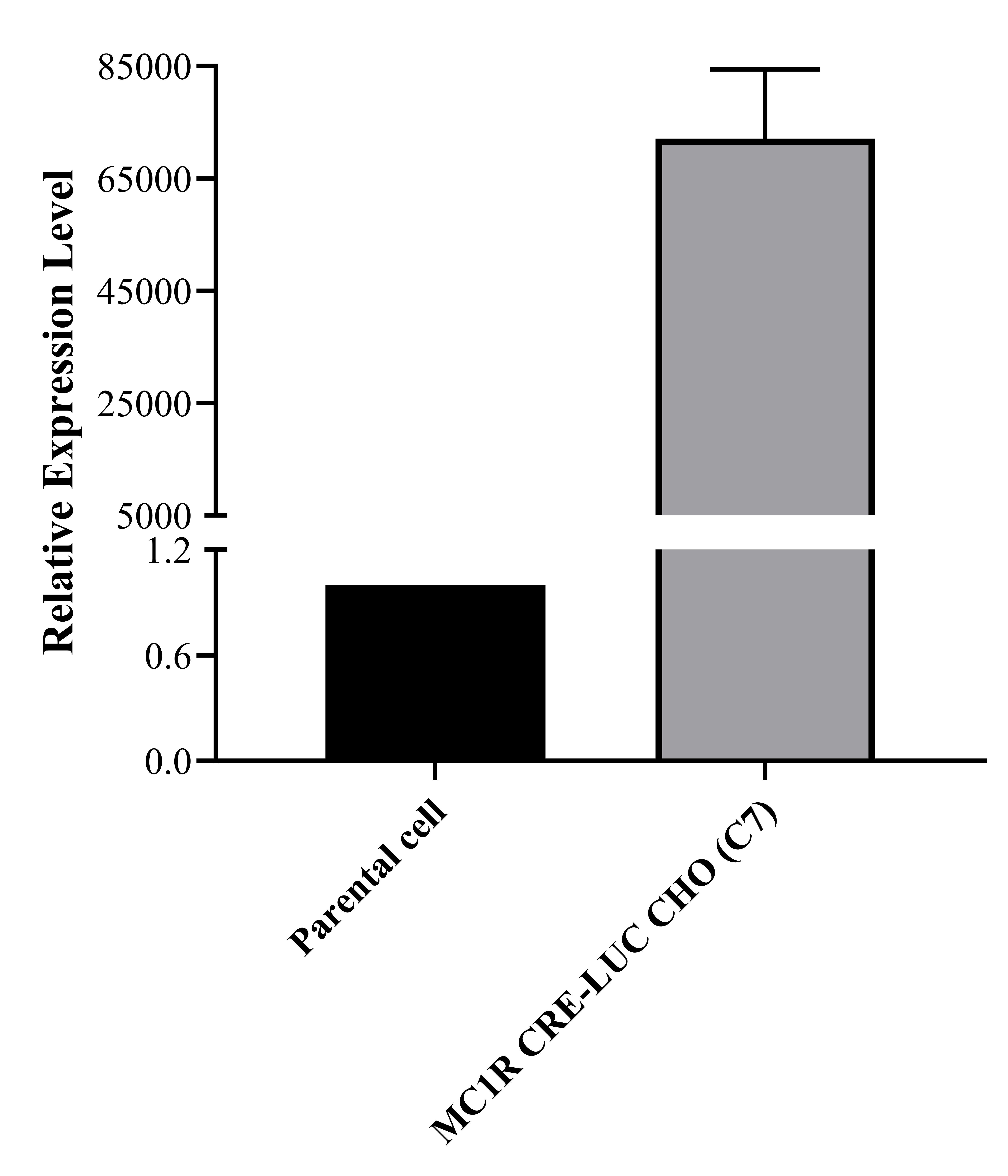 MC1R CRE-Luc CHO 細(xì)胞藥靶模型很好的模擬了體內(nèi) MC1R 的信號轉(zhuǎn)導(dǎo)過程,原理見 下圖所示。