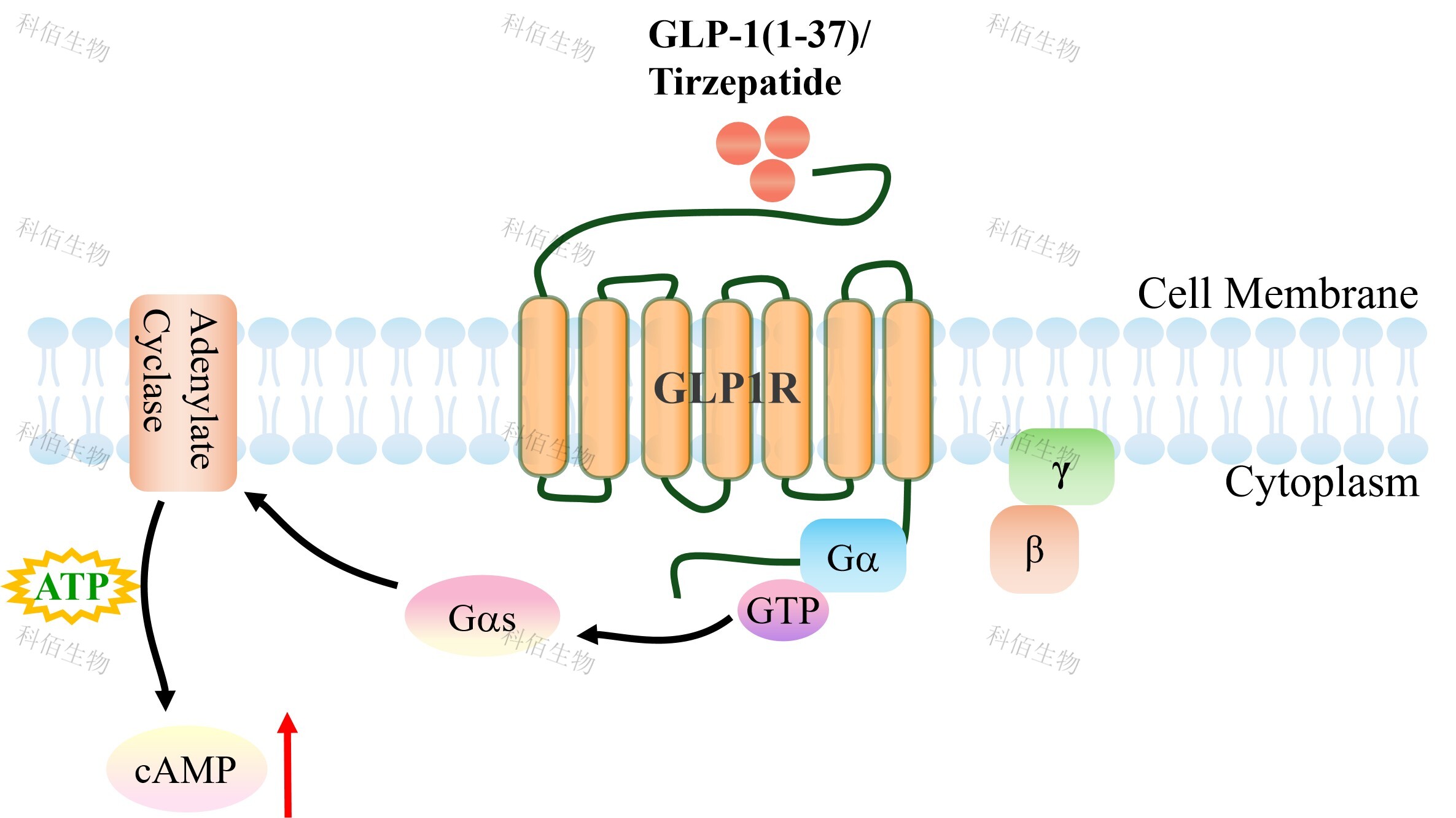 cAMP 在 G 蛋白偶聯受體(GPCR)信號轉導中是一種關鍵的第二信使。當配體結合到 GPCR,構象發(fā)生變化,激活受體接著激活 G 蛋白,Gs 的激活導致腺苷酸環(huán)化酶調控 cAMP 的升高。GLP1R 藥靶模型很好的模擬了體內 GLP1R 的信號轉導過程,原理見下圖所示。![]() Figure 1. GLP1R CHO 細胞模型原理圖 |