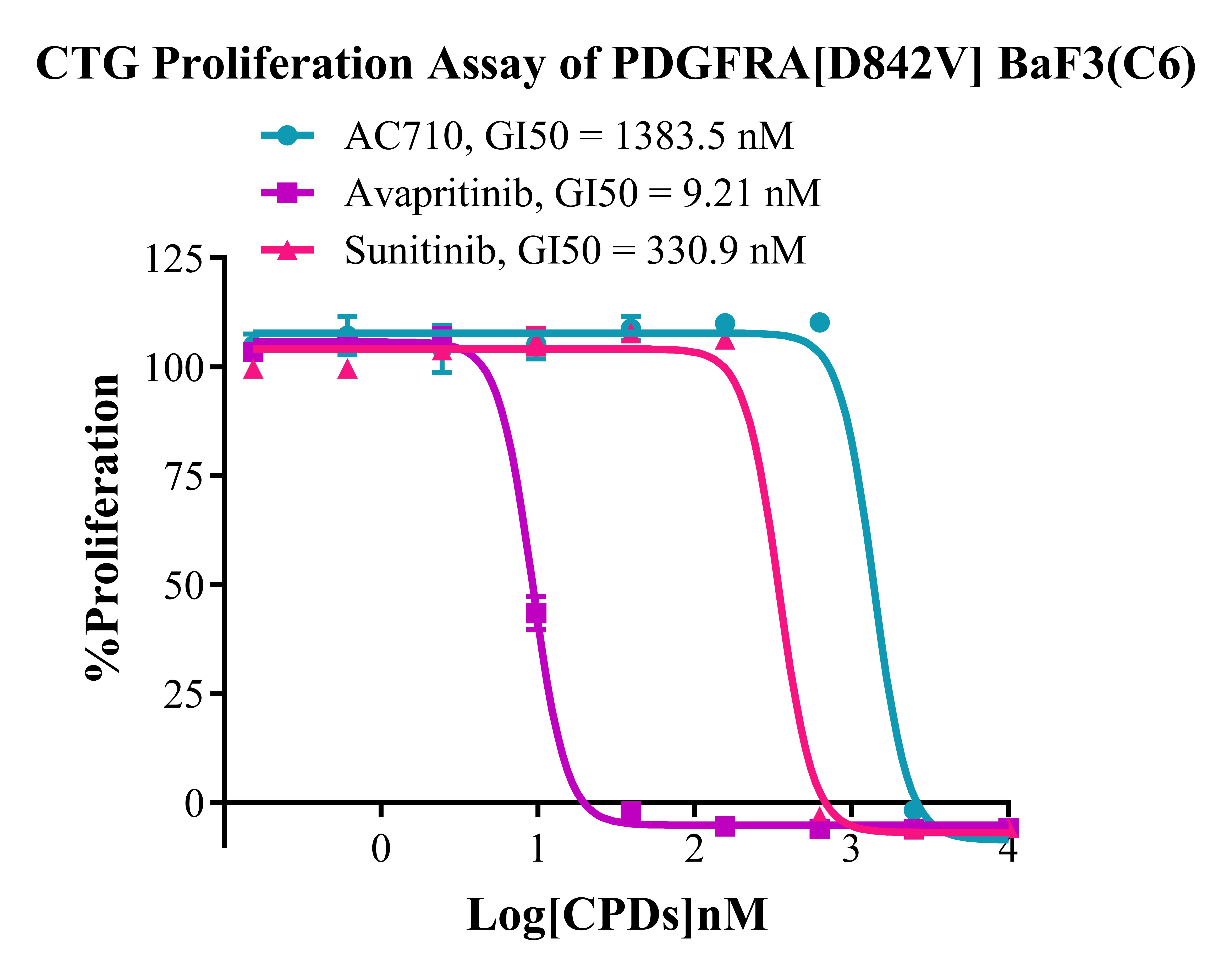 Figure 4. CTG Proliferation Assay of BaF3 PDGFRA [D842V] BaF3(C6). |