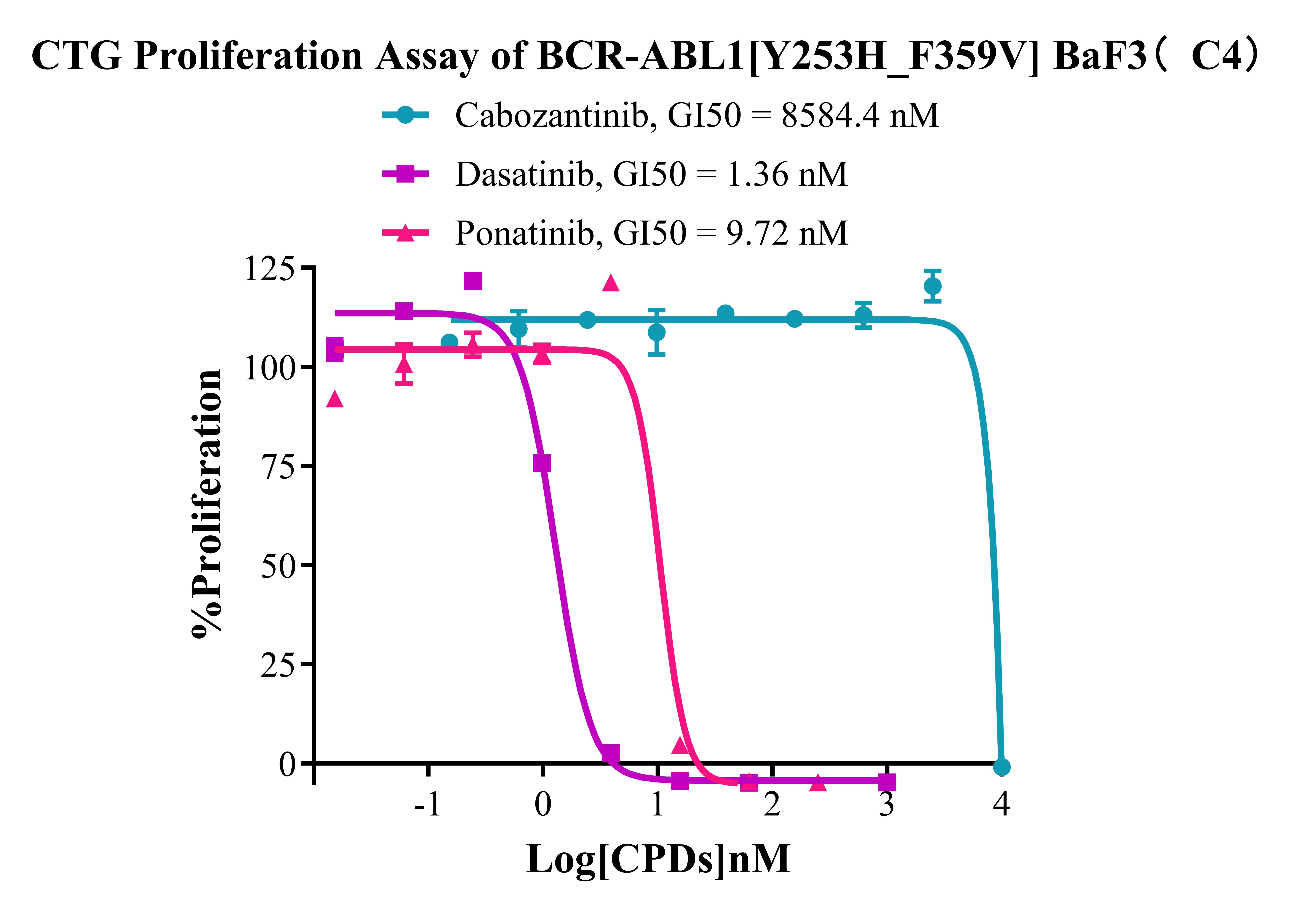 Figure 5. CTG Proliferation Assay of BCR-ABL1 [Y253H_F359V] BaF3(C4). |