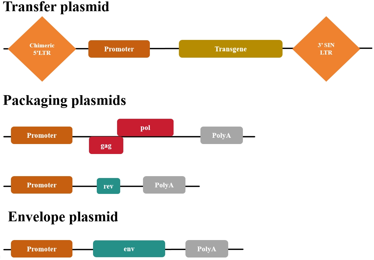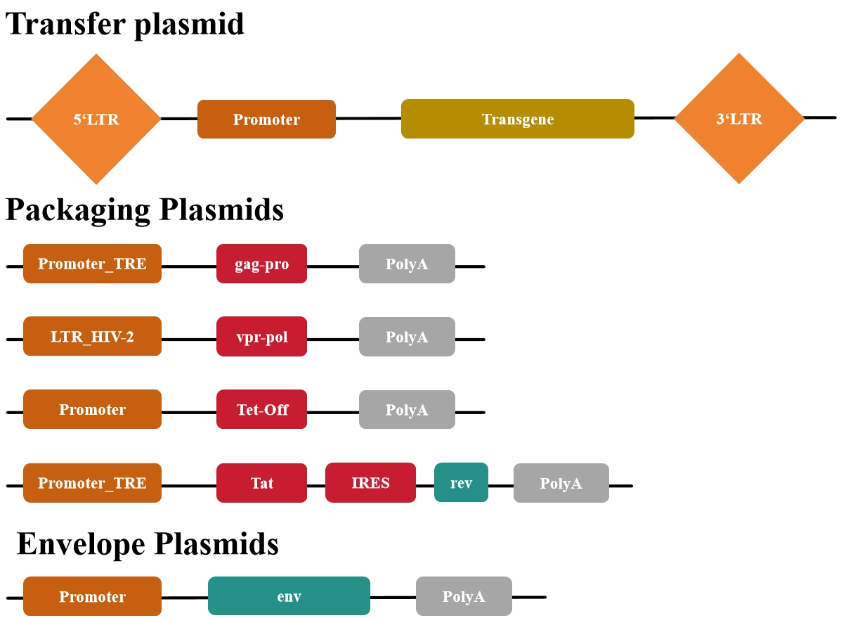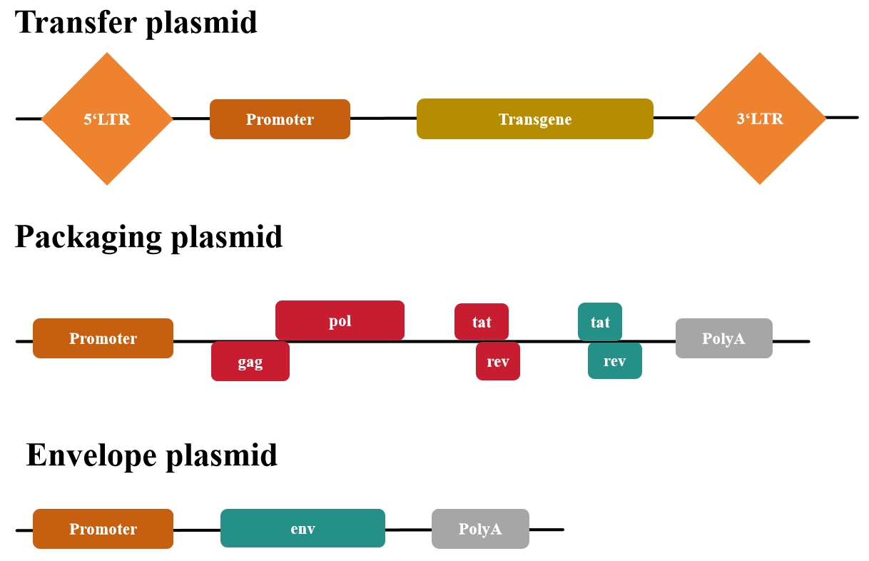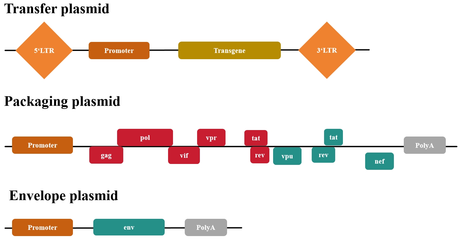 第一代慢病毒質粒缺乏安全性改進以及無法生產具有復制能力的慢病毒(即產生能夠感染細胞并進一步自我復制的病毒顆粒),基本已經廢棄使用了。