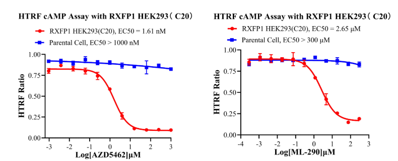為助力RXFP1靶點(diǎn)藥物研發(fā),南京科佰開發(fā)了RXFP1 CHO、RXFP1 HEK293細(xì)胞篩選模型,產(chǎn)品驗證結(jié)果如下: