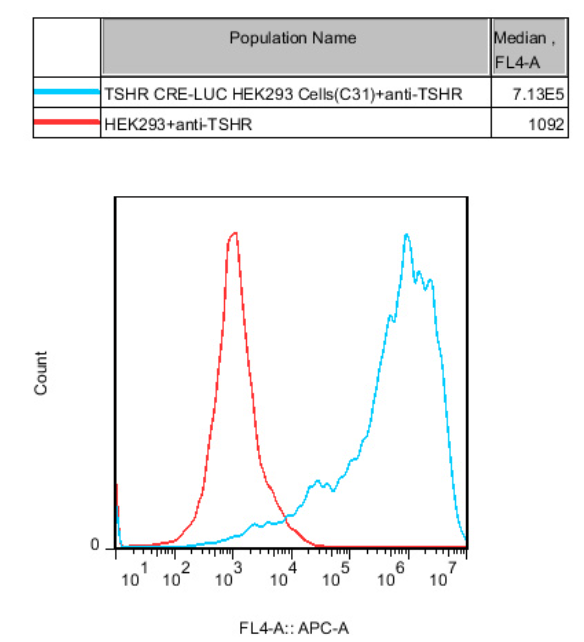 Figure 3. Recombinant TSHR CRE-Luc HEK293 stably expressing TSHR.